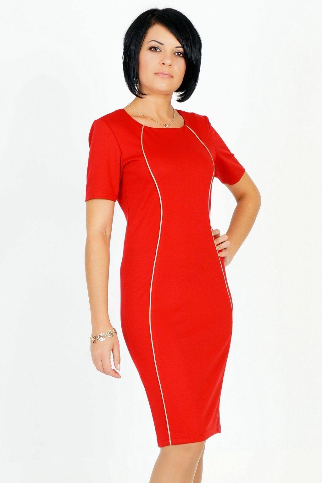 С круглым вырезом горловины. Силуэт выделен кантом под золото.