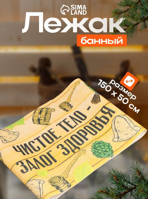 • Коврик - лежак для бани и сауны с принтом «Чистое тело — залог здоровья», 150×50 см, полиэфир, «Банная забава»