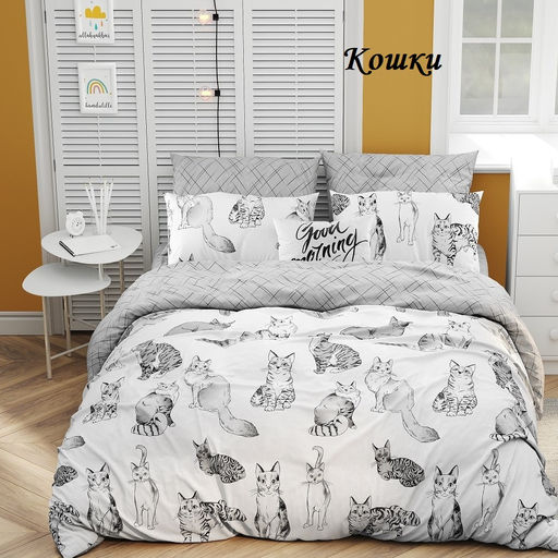 • Комплект постельного белья Кошки, 1,5-сп Поплин