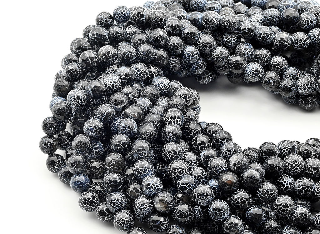 • Бусины из агата "Вены Дракона" шарик гр.10мм цв.чёрный, 36см, 39 бусин Радуга камня