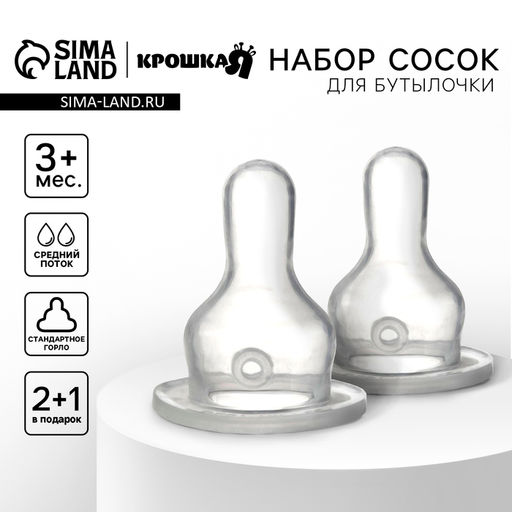Соска на бутылочку Крошка Я Classic, классическое горло, от 3 мес., средний поток, 2+1 шт.