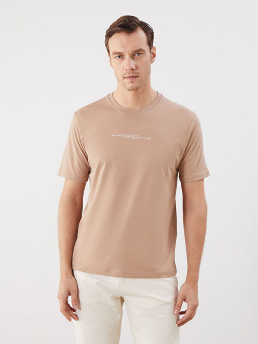 • Bisiklet Yaka Bask?l? Penye Erkek Ti??rt