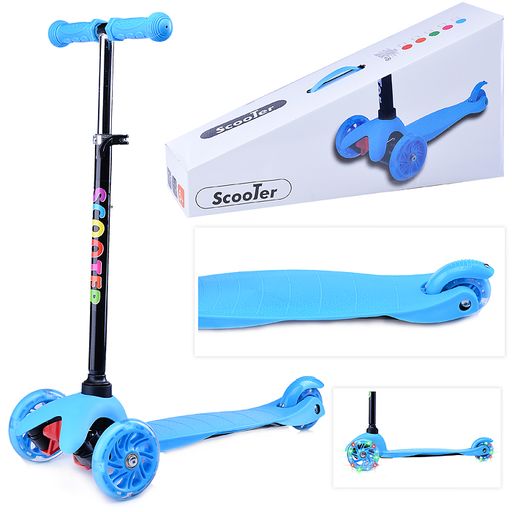 Самокат 3-х кол., синий, светящиеся колёса, PU, ABEC 7, в коробке