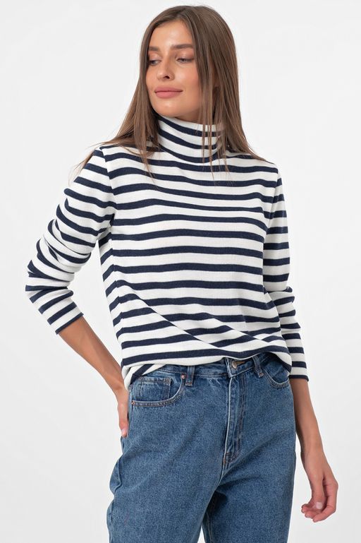 • Джемпер вязаный с высоким горлом в синюю полоску