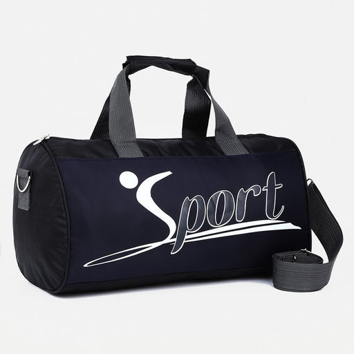• Сумка спортивная на молнии, длинный ремень, маленький размер, с принтом, чёрная/синяя