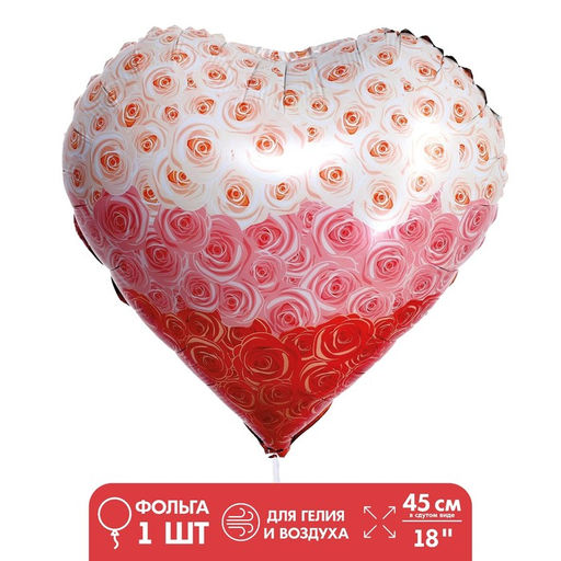 Цена за 3 шт. Шар воздушный фольгированный 18" «Сердце в розах»