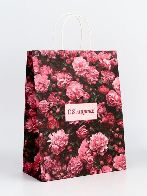• Цена за 2 шт. Пакет подарочный крафт "С 8 Марта" 25 х 12 х 32 См