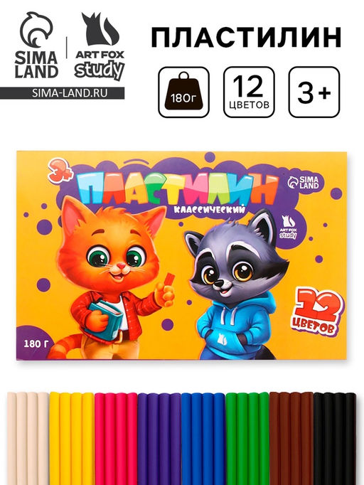 • Цена за 2 шт. Пластилин 12 цветов, 180 г