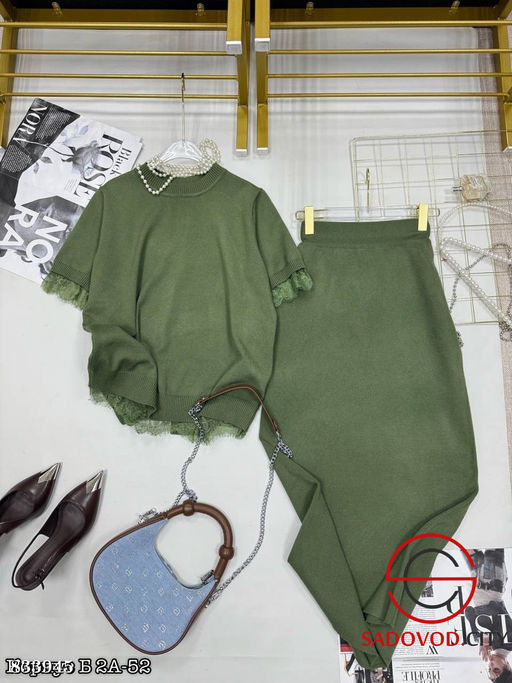 • Костюм с юбкой и кофтой с кружевами