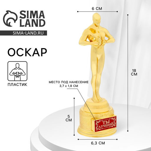 Устройте персональную церемонию вручения «Оскара»! Сделайте приятное родным и близким — скажите, как они дороги вам, выразите свою любовь, благодарность и восхищение. А с таким сувениром этот момент запомнится на долгие годы.Золотистая фигура «Оскар» с лавровым венком в руках дополнена пластиковой подставкой. На постаменте есть яркий голографический шильд со званием получателя награды.Дарите родным и близким яркие моменты! Для кого: Для мужчины. Высота, см: 18. Вид упаковки: Пакет. Вид упаковки: Подвес. Тематика праздника: Корпоратив. Тематика праздника: Профессиональные праздники. Тематика праздника: 14 Февраля. Тематика праздника: 23 Февраля. Тематика праздника: Универсальная тематика. Адресат: Без адресата. Вид фигуры: Оскар. Бесплатная доставка: Да. Наша разработка: Да. Размеры товара: 6.3/18/5. Примечание: В связи с особенностями производства черные точки на поверхности изделия не являются браком..