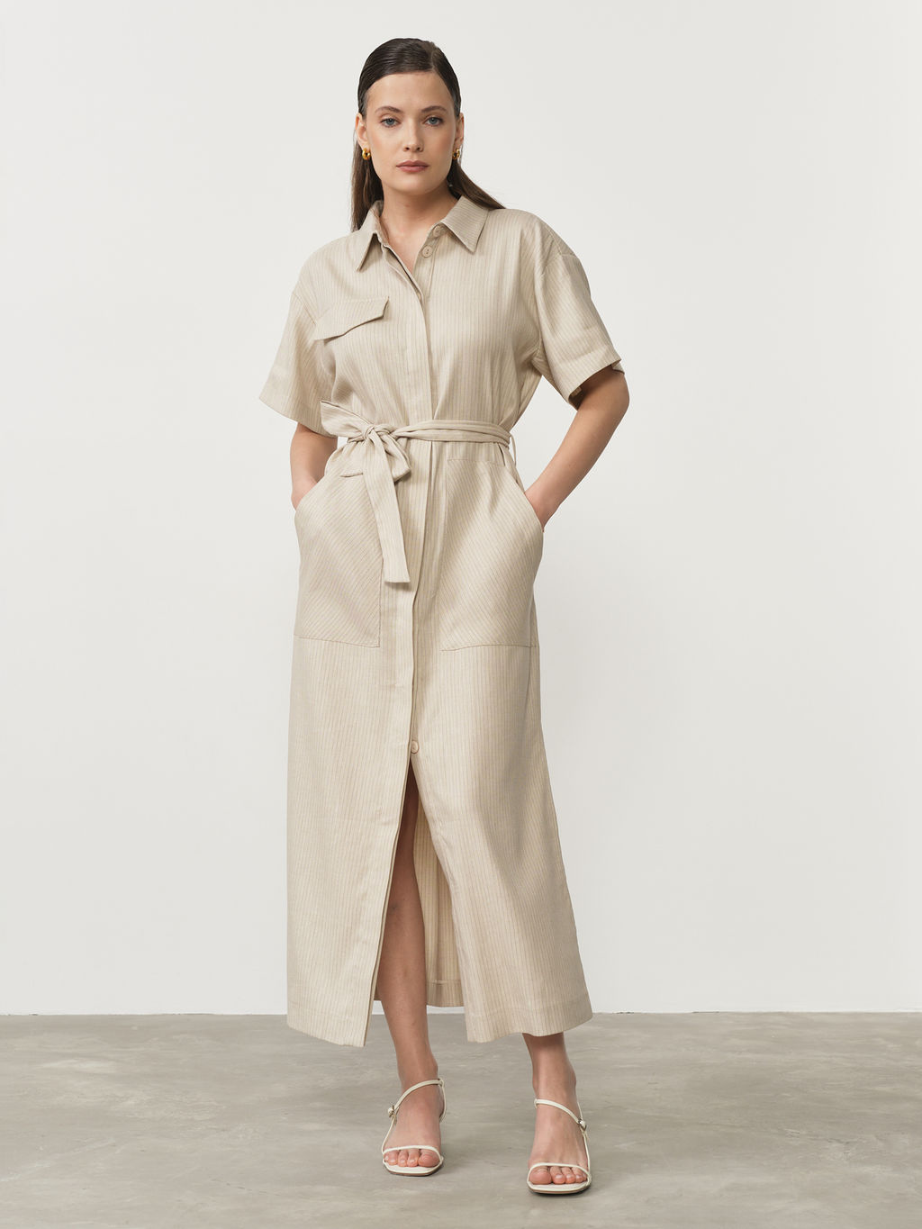 • Платье льняное 90704 бежевое