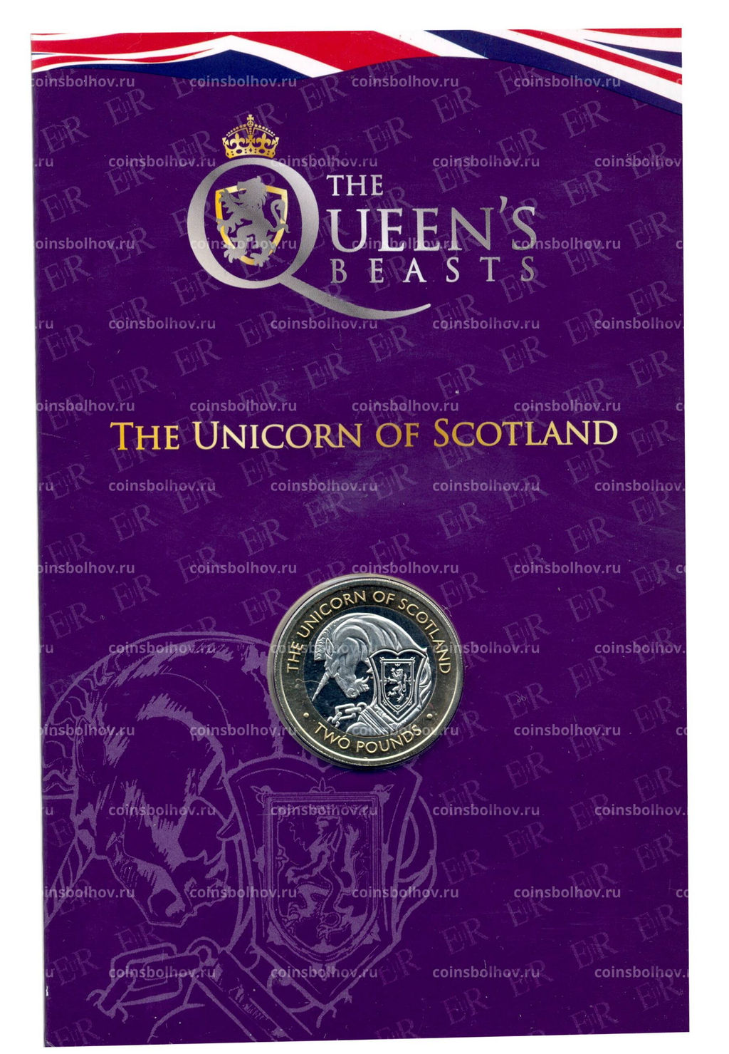 • Монета 2 фунта 2021 года Британские территории в Индийском океане  Звери Королевы  Единорог Шотландии (в подарочном блистере)