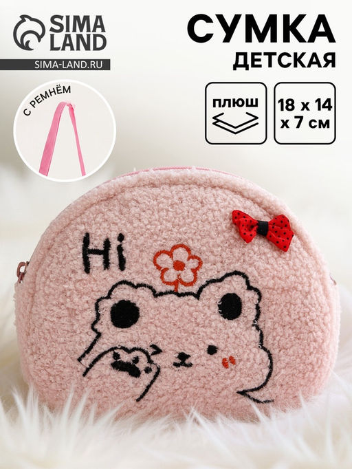 • Сумка детская плюшевая, «Мишка» с бантиком, нежно-розовая