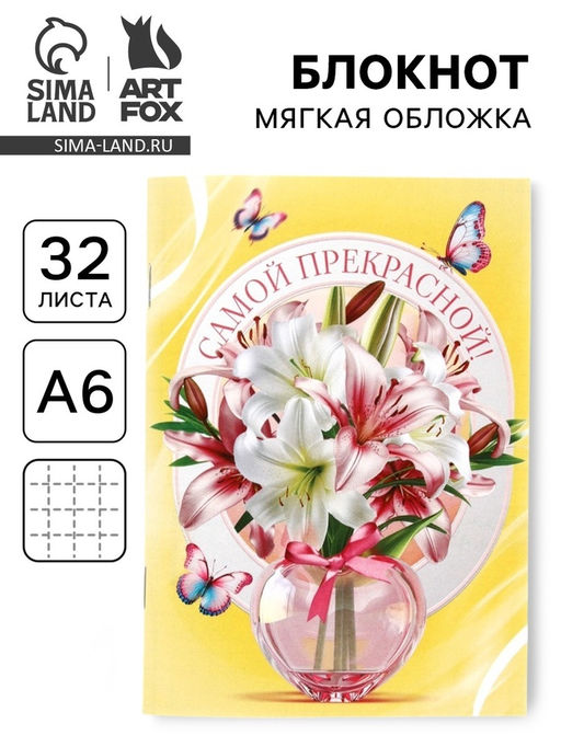Для кого: Для женщины. Формат: А6. Линовка блока: Клетка. Плотность, г/м²: 65. Тип скрепления: На скобе. Количество листов: 32. Отделка: Без отделки. Тематика: Женская. Тематика праздника: 8 Марта. Белизна блока, %: 95-100. Штрихкод на единице товара: Да. Вид обложки: Мягкая. Дизайн обложки: С рисунком. Бесплатная доставка: Да. Наша разработка: Да.
