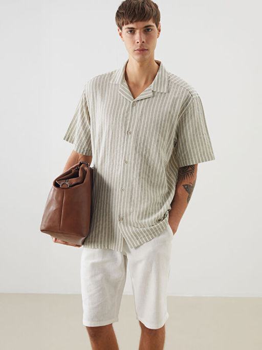 • Regular Fit K?sa Kollu ?izgili Erkek G?mlek