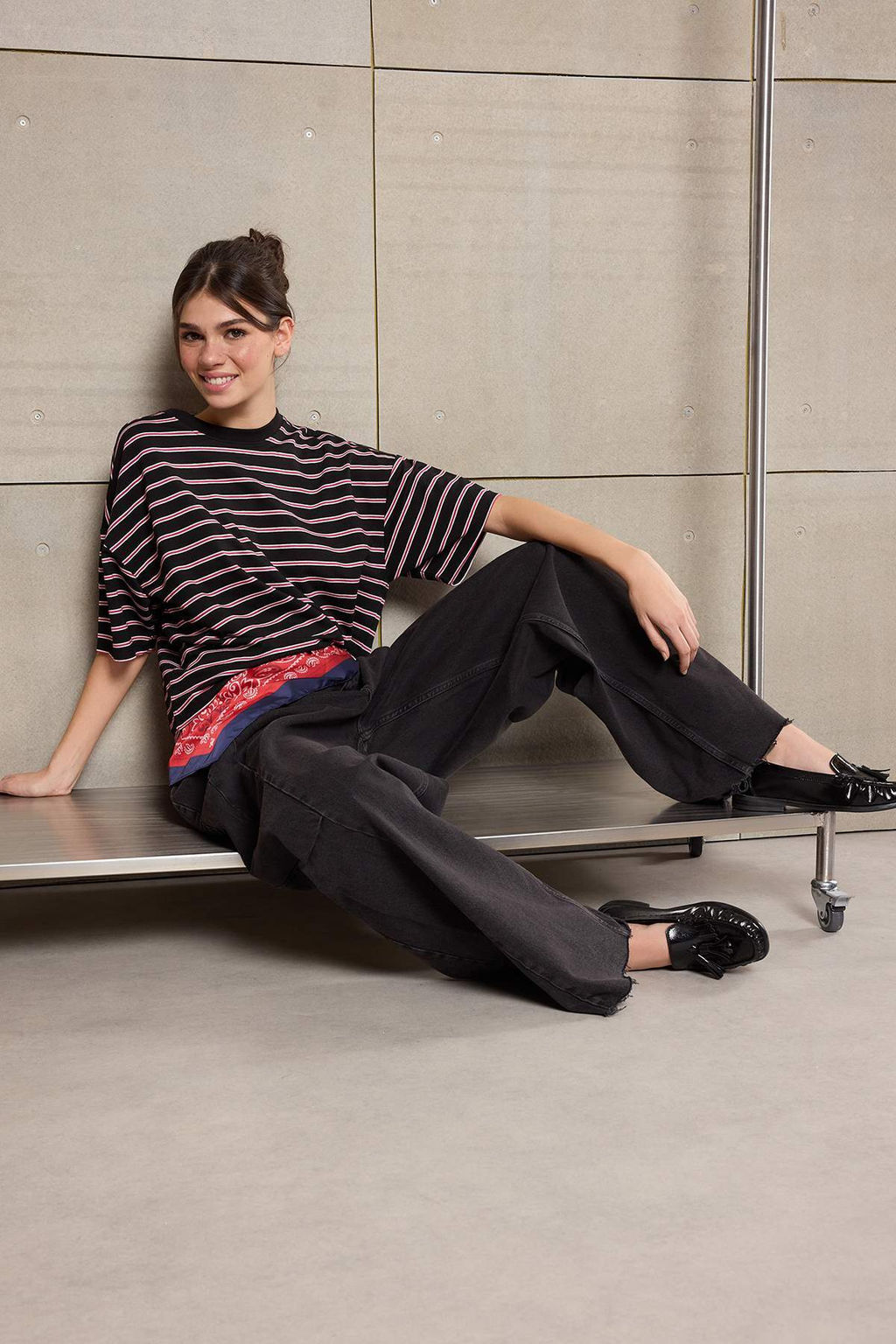 • Teen Cok Renkli Cizgili Boxy/Relaxed Kal?p K?sa Kollu Pamuk Kar?s?ml? Orme T-Shirt TWOSS26TS00048