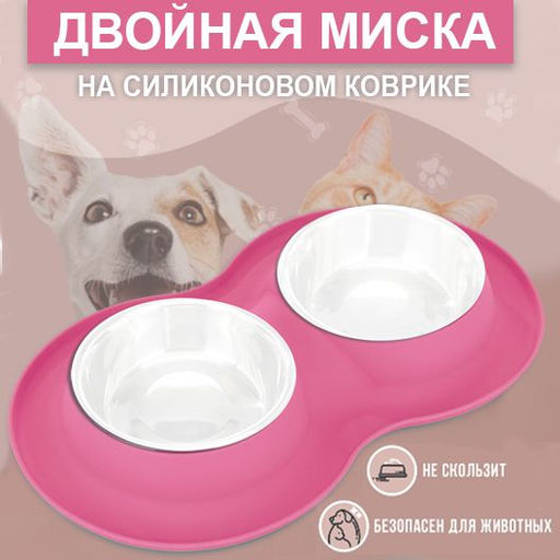 • Двойная миска на силиконовой нескользящей подставке розовая 43х25х5см