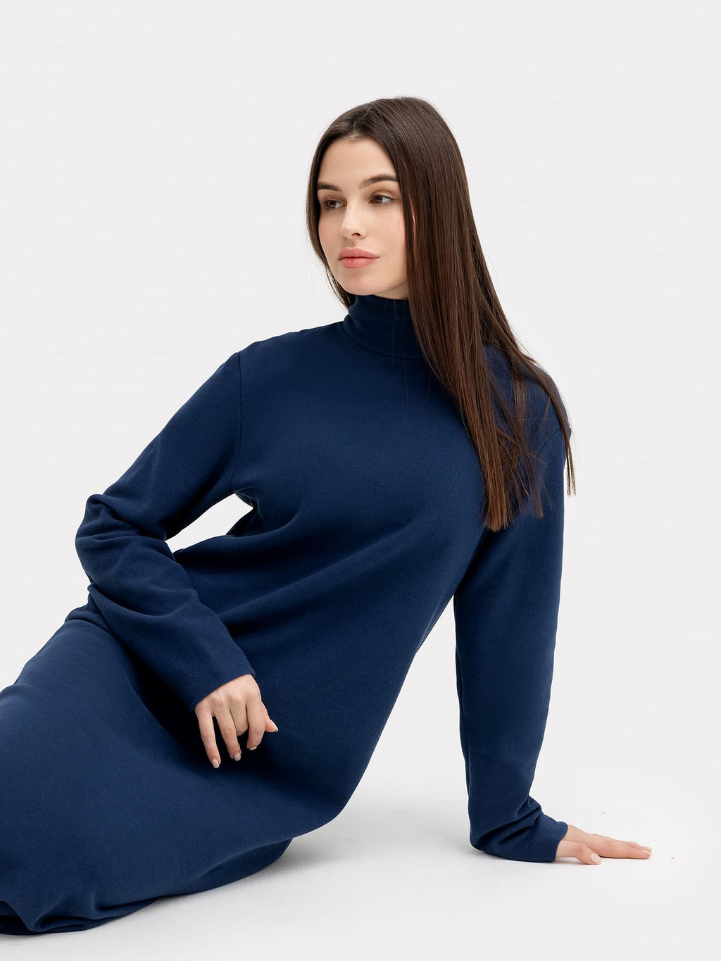 Уютное платье женское прямого силуэта из трикотажного полотна селаник. Горловина круглой формы с воротником-стойкой. На детали спинки центральная застежка на потайную молнию и обработан разрез. Рукав втачной, длинный. Модель длиной ниже колена. Теплое и удобное лучший вариант для осени, зимы и демисезона. Широкий размерный ряд. Рекомендуем!­