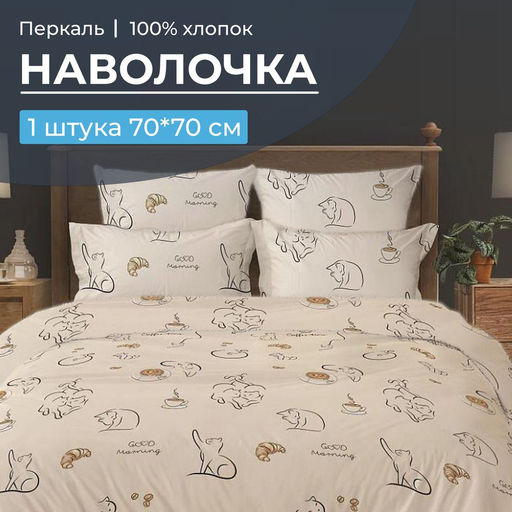 Представляем вам наволочку 70х70 из перкаля от Ивановотекстиль — идеальное сочетание качества и комфорта для вашего сна. Наволочка 70х70, выполненная из шелковистой и мягкой ткани из 100% натурального хлопка, станет незаменимым элементом вашего постельного белья. Размер 70х70 см и клапан глубиной не менее 25 см обеспечивают надежную фиксацию подушки, а плотность ткани 110 г/м2 гарантирует долговечность и износостойкость. Наволочка 70х70 из перкаля обладают дышащими и гипоаллергенными свойствами, что способствует здоровому и комфортному сну. Они изготовлены из лучших материалов с использованием передовых технологий, что подтверждает их высокое качество и долговечность. Продукция Ивановотекстиль производится в Ивановской области и имеет сертификацию качества "ГОСТ 31307-2005", а также зарегистрирована в государственной системе маркировки "Честный знак". Погрузитесь в мир здорового сна с нашими наволочкой, которые не только добавят уют в вашу спальню, но и впечатлят своим дизайном. Не упустите возможность приобрести наволочку 70х70 перкаль от Ивановотекстиль и наслаждаться комфортом каждую ночь! -- Характеристики -- Вес: 170 кг Размер наволочки: 70x70 Замок наволочки: С клапаном Ткань: Перкаль Состав: 100 % хлопок Плотность: 110 г/м2 Плотность плетения: Высокая Отделка: Без отделки Режим стирки: При 40 градусах Цвет: Бежевый Расцветка: Котолатте Вид принта: Кот, котёнок Целевая аудитория: Взрослая