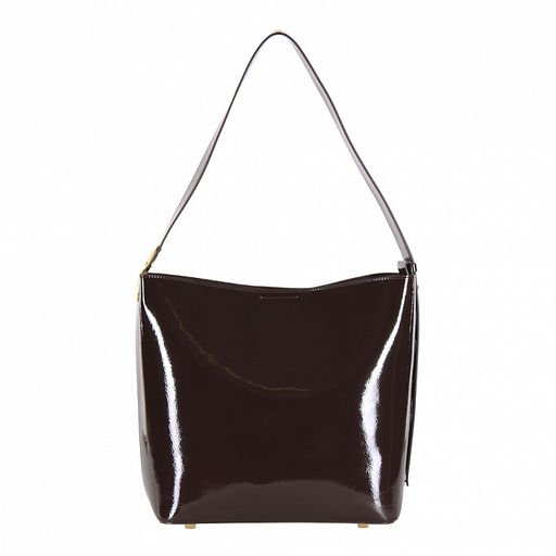 Стильная модель, выполнена из натуральной лаковой кожи. Декорирована элементом на ремне. Дополнена золотистой фурнитурой. Данная модель закрывается на кнопку. Каркас полужесткий. Носится на плече или в руке за ручки. Встроенная ручка регулируется по длине. На дне предусмотрены ножки. К комплекте идет съемный кошелек.