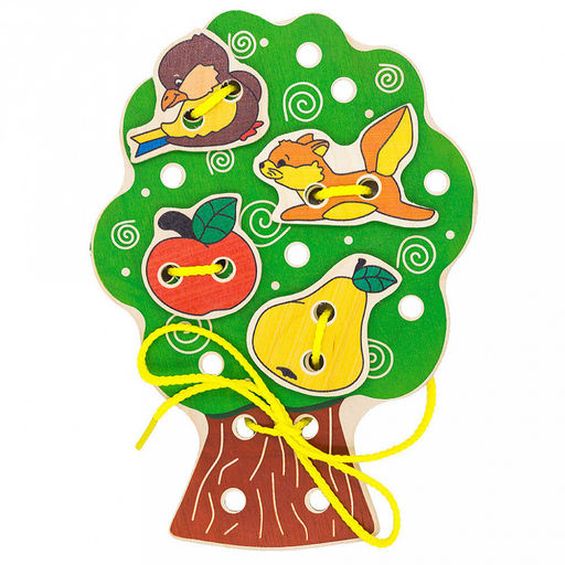 • Игрушка "Шнуровка "Дерево" 21х15х1см, 6 элементов, ЛХДФ, текстиль, в пакете с подвесом (Россия)