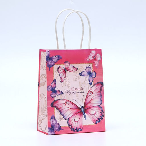 • Цена за 3 шт. Пакет подарочный крафтовый Самой прекрасной 15?12?6 см, 120 г/м?