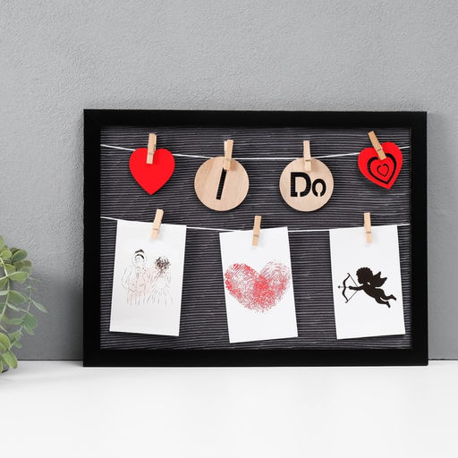 • Фоторамка - коллаж на 3 фото 9?13 см Я согласна, с прищепками, чёрная, 40?30?1.5 см