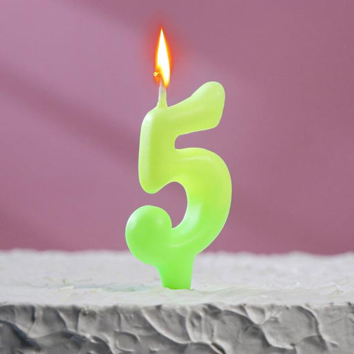 • Цена за 2 шт. Свеча для торта цифра «Люминесцентная», 5.5 см, цифра 5