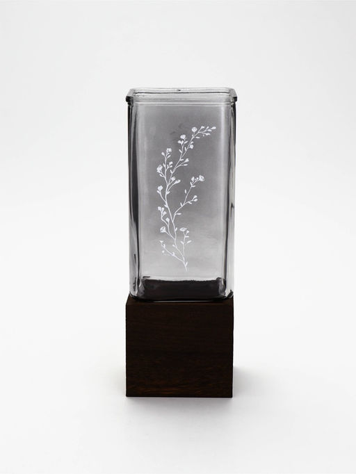 • Ваза для цветов стеклянная с деревянной подставкой из темного стекла, 25 х 9 см