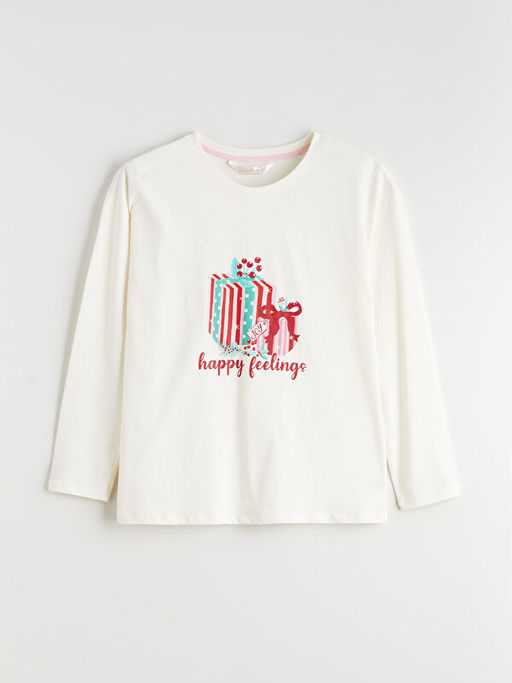 • Bisiklet Yaka Y?lba?? Temal? Kad?n Pijama ?st?