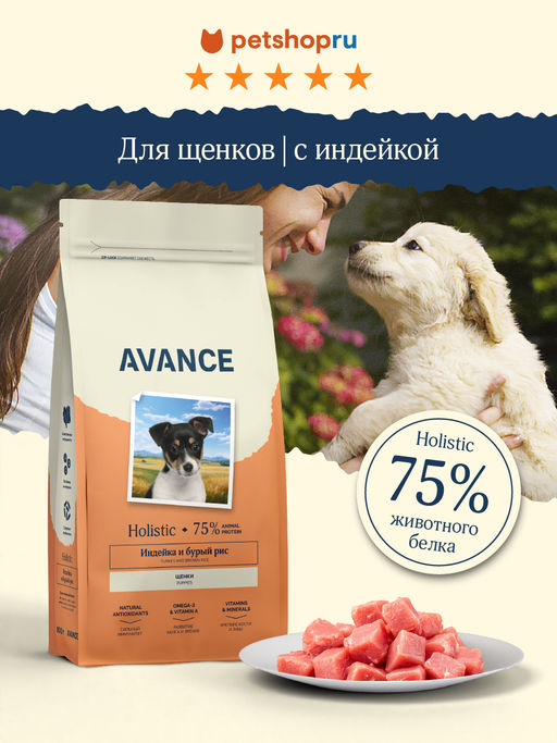 • Полнорационный сухой корм для щенков с индейкой и бурым рисом (Puppy)