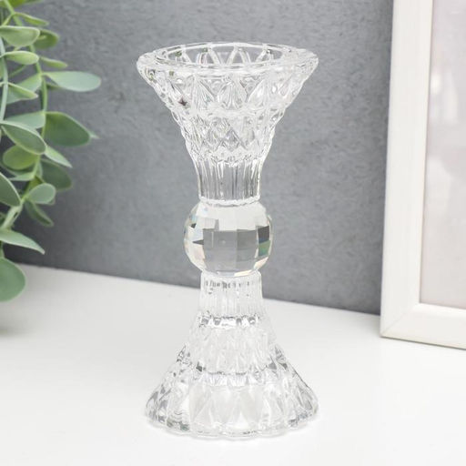 • Стеклянный подсвечник на 1 свечу «Кристалл», прозрачный, 13×6×6 см