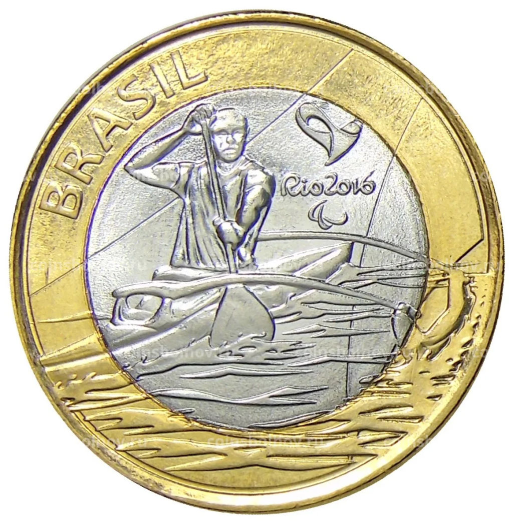 • Монета 1 реал 2015 года Бразилия XV летние Паралимпийские игры, Рио-де-Жанейро 2016  Параканоэ