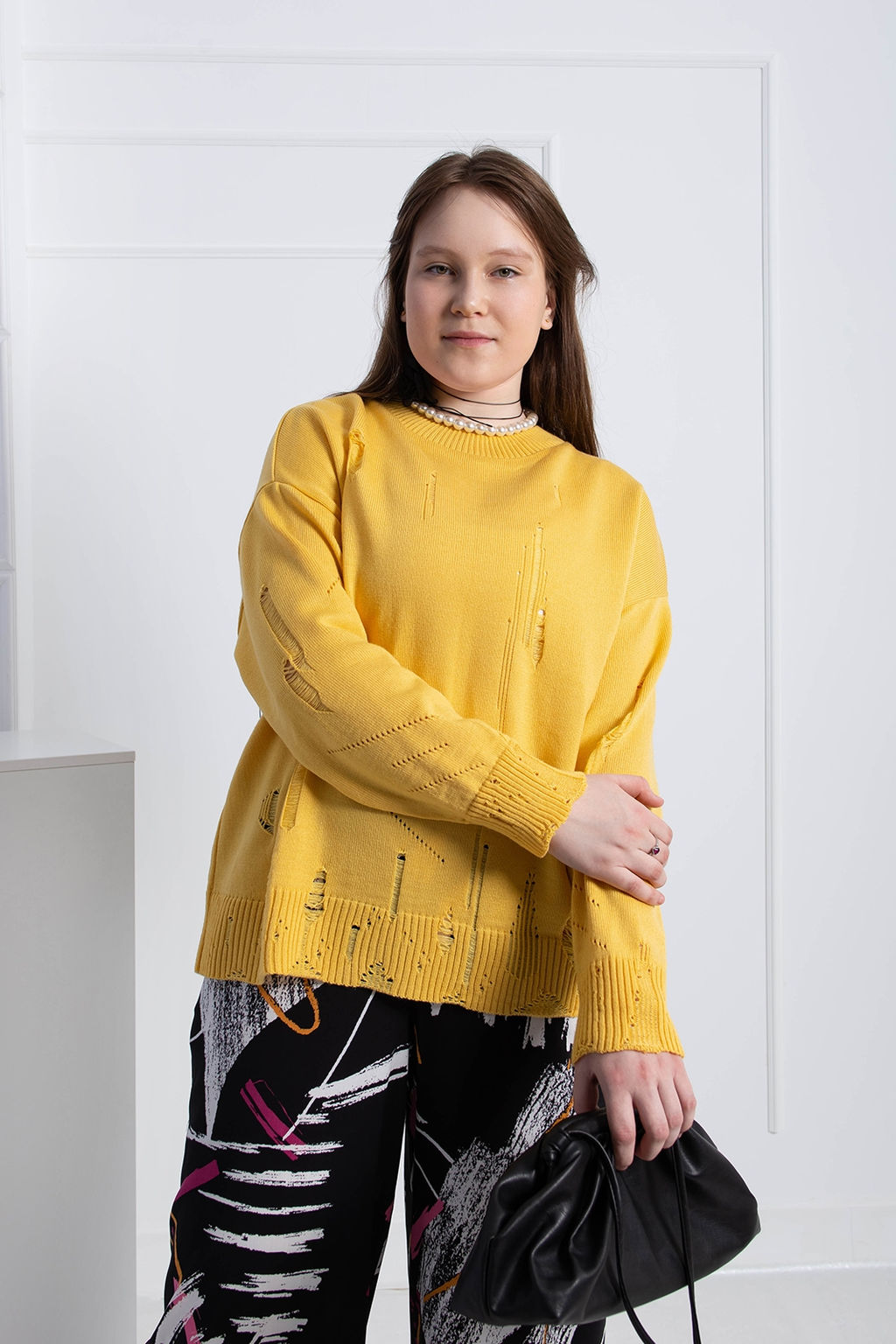 Джемпер рваный оверсайз - трендовая вещь не первый сезон! Рваный джемпер отлично подходит для подростков, так и для людей любого возраста. Рукав рубашечный, со спущенной линией плеча. Джемпер в стиле гранж и y2k придаст вашему стилю оригинальности и подчеркнут индивидуальность.­