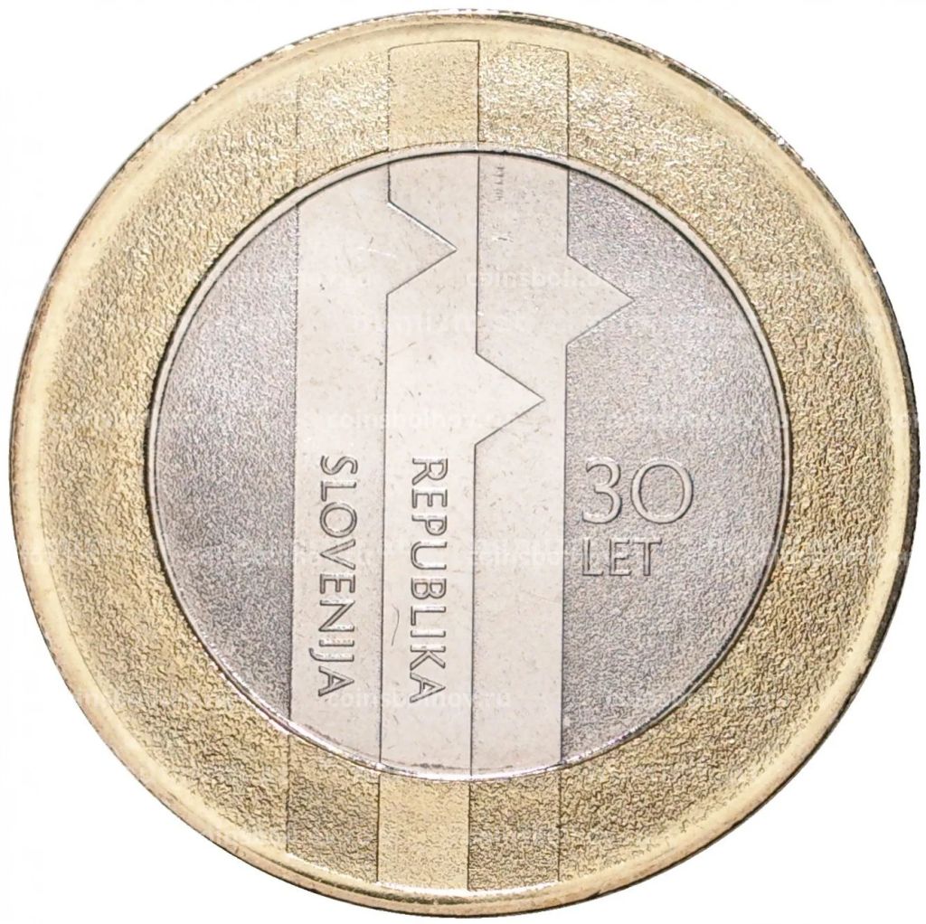 Монета 3 евро 2021 года Словения 30 лет государственности Республики Словения