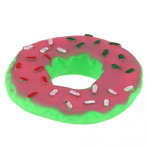• Игрушка для собаки "Пончик" д14см, h3см, с пищалкой, ПВХ, фактурная, цвета микс (розово-зеленый, желто-розовый), "Пэт тойс (Pet toys)" (Китай)