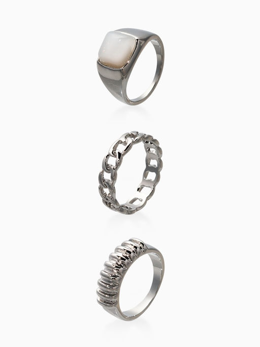 • Набор колец 3 шт "Новый стиль" цепь, размер МИКС, цвет белый в серебре