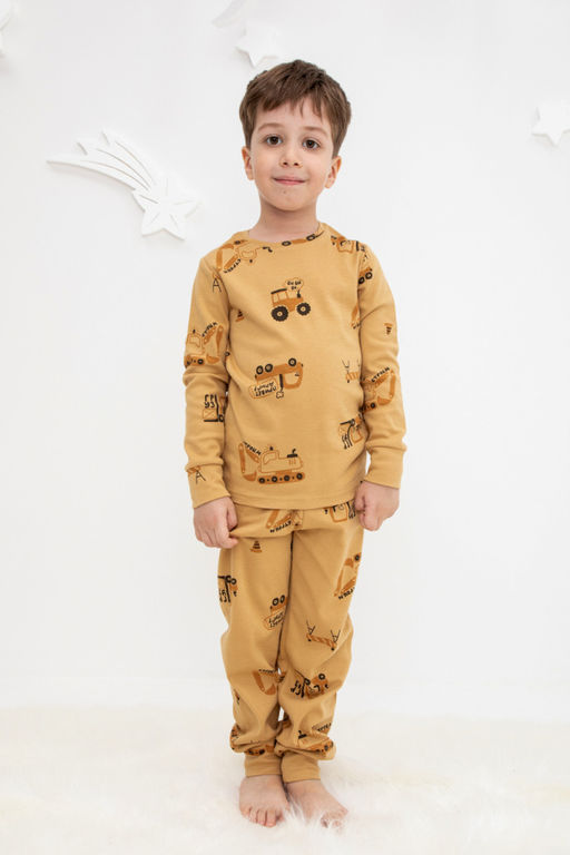 Трикотажный пижамный комплект из натурального хлопка. У джемпера длинные втачные рукава с мягкими манжетами. Брюки с удобным поясом на резинке и эластичными манжетами. Оригинальная набивка выполнена из стойких, гипоаллергенных текстильных красителей. Все трикотажные полотна производятся в соответствии с нормами Швейцарского сертификата ЭкоТекс.­
