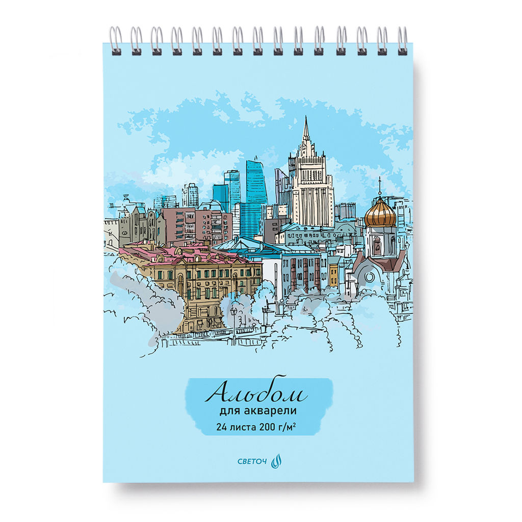 • Светоч А228 Альбом для акварели, 200 г/м2 A4 29.5 х 21 см 2 шт. на гребне 24 л. 01601 Городской пейзаж