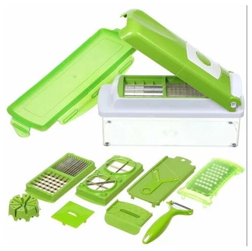Nicer Diser Plus заменит 3 кухонных прибора: овощерезку, тёрку и шинковку. Этот уникальный прибор идеально подходит для фруктов, овощей и мяса, позволяет нарезать продукты кубиками, соломкой, ломтиками, разрезать на 4, 8 кусочков или же натереть. Лезвия Nicer Diser Plus изготовлены из нержавеющей стали и имеют особую конструкцию, благодаря которой не мнут овощи и фрукты с кожурой, поэтому легко режут как помидоры, так и яблоки. В контейнере Nicer Dicer Plus можно хранить продукты, а герметичная крышка, плотно прилегающая к контейнеру, надолго сохранит их свежими. Прибор компактно складывается в один контейнер, поэтому экономит место на кухне. Nicer Dicer Plus легко мыть необходимо просто снять насадки с лезвиями с контейнера и промыть под струёй воды, также прибор можно мыть в посудомоечной машине.