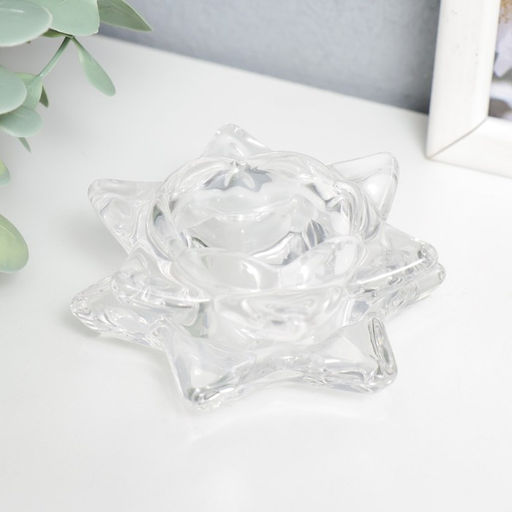 • Цена за 2 шт. Стеклянный подсвечник на 1 свечу «Лотос», прозрачный, 4.5×8.3×8.3 см