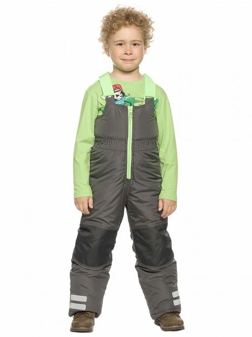 Полукомбинезон для мальчиков с высокой грудкой и спинкой, по поясу резинка. Рекомендуемый температурный режим не ниже минус 25 градусов. Неотстегивающиеся лямки из контрастной резины, с регулировкой по длине. Колени и верх задней части брюк усилен более плотной тканью. Антискользящая резинка на муфтах брюк. Съемные контрастные силиконовые штрипки в цвет лямок. Световозвращающий принт. Контрастная молния с силиконовым пуллером. перевод Вне правил.