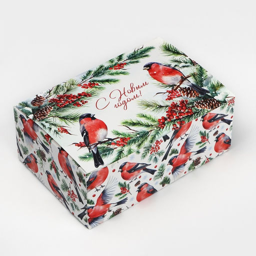 • Коробка подарочная новогодняя складная «Снегири», 18×12×7 см
