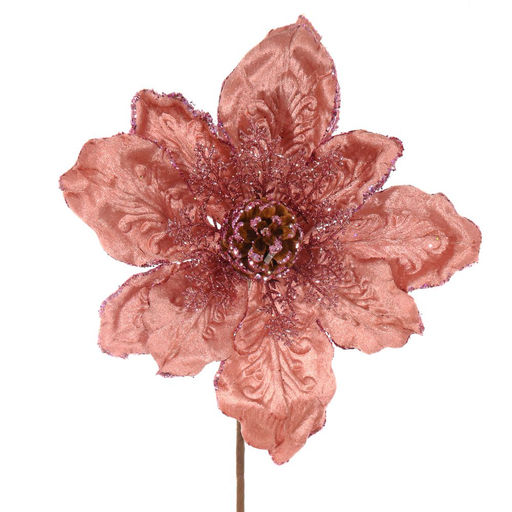 С ролью украшения новогодней ели прекрасно справится этот искусственный цветок. Магнолия пепельно-розового цвета. Благородность цветка подчеркивают блестки по краям и в середине.