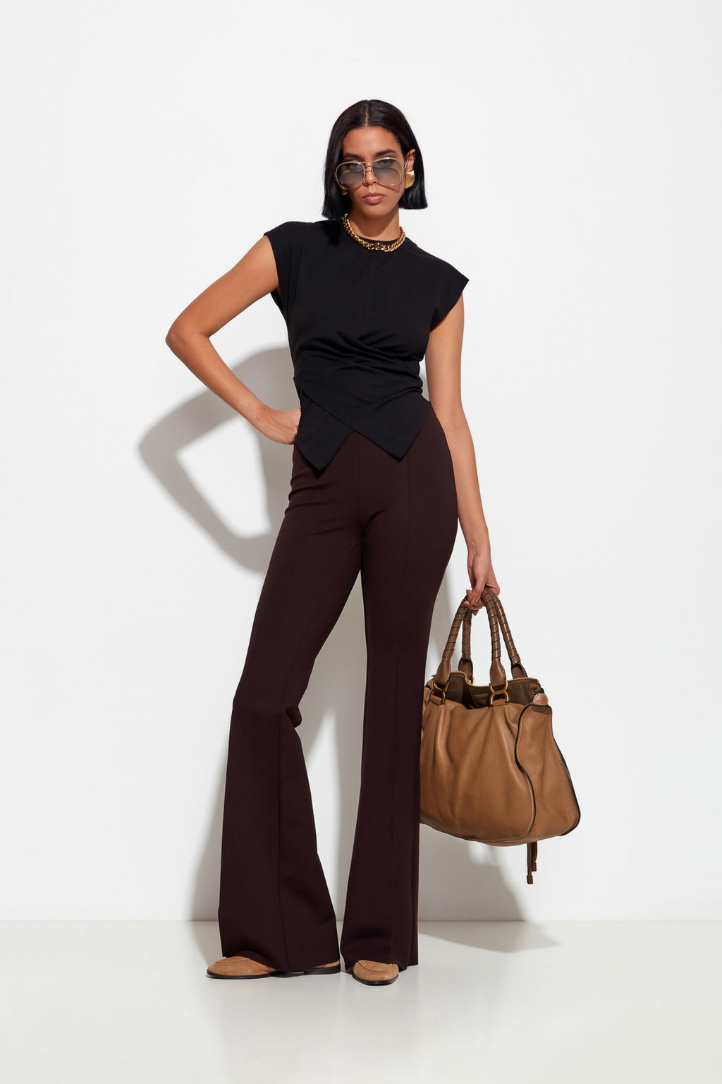 Особенности модели:Крой: классический, расклешенный от колена — подчёркивает силуэт и обеспечивает комфорт.Цвет: глубокий шоколадный — универсальный и стильный.Детали: пояс на эластичной резинке.Сезонность: подходит для холодного времени года, сохраняет тепло и комфорт.