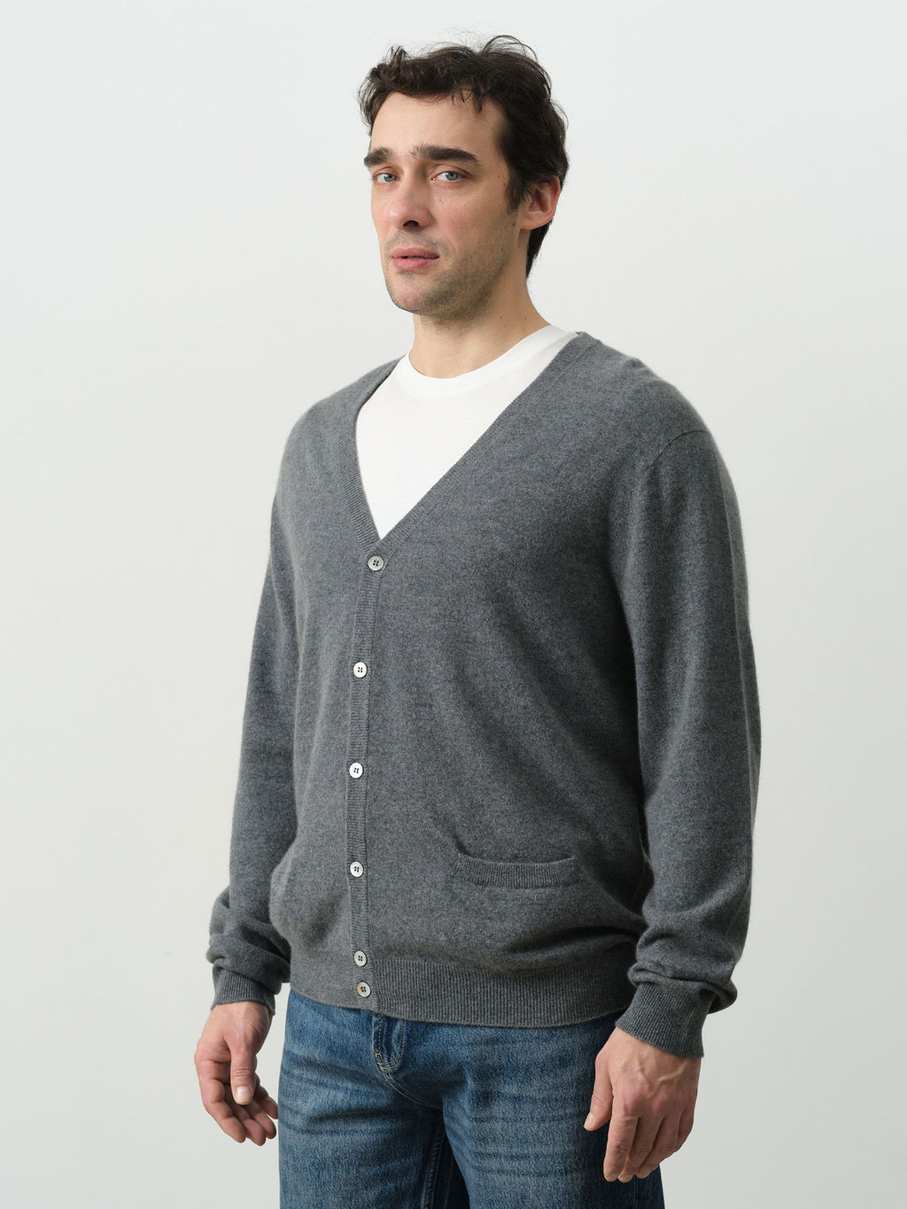 Классический мужской кардиган из натурального кашемира универсальная модель для повседневного и делового гардероба. Лаконичный дизайн и мягкая фактура делают его идеальным выбором для комфортных образов в любое время года.