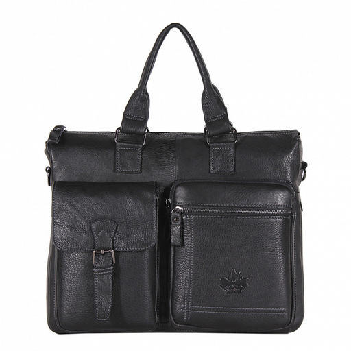 Мужской портфель выполнен из натуральной кожи. Дополнен  фурнитурой темное серебро. Данная модель закрывается на молнию. Каркас полужесткий. Носится в руке за встроенные ручки или на плече. В комплекте имеется съемный ремень.