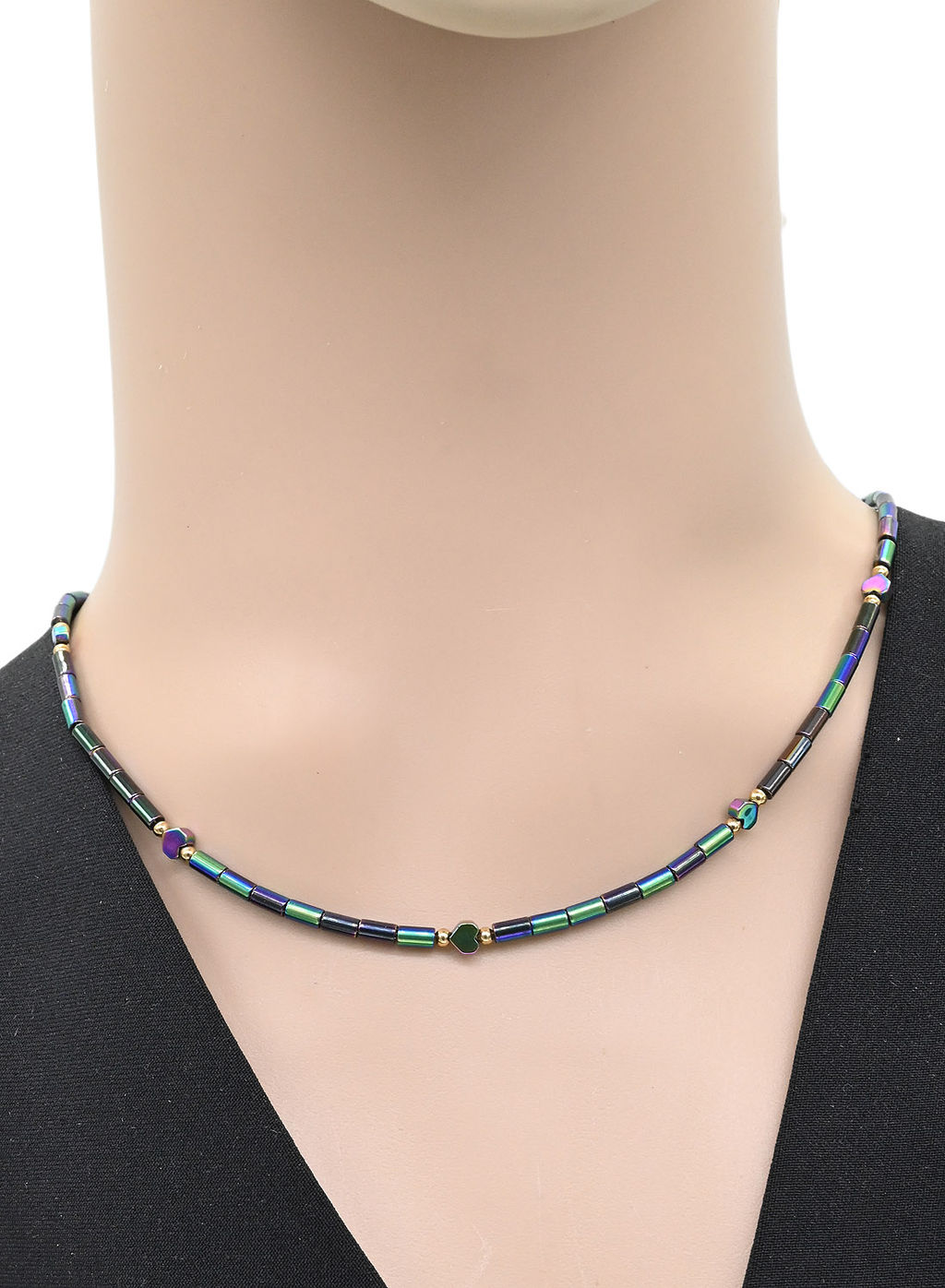 • Чокер из гематита цилиндр 2*5мм цвет хамелеон, 40см Радуга камня