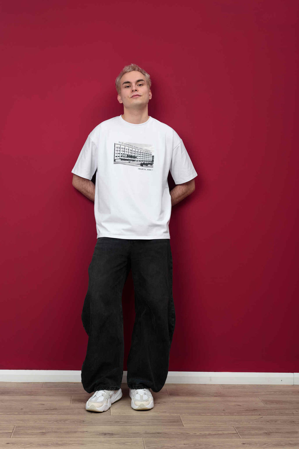 Футболка унисекс в стиле оверсайз из серии "Архитектура", на груди изображено здание "Марийского политехнического института".