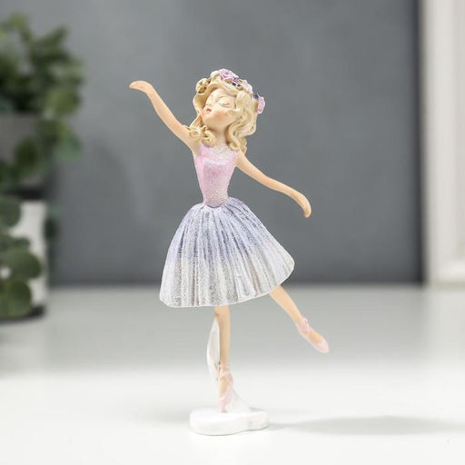 Цена за 6 шт. Фигурка полистоун «Балерина с кудрями, в розово-сиреневом платье», 13×3.5×6.5 см